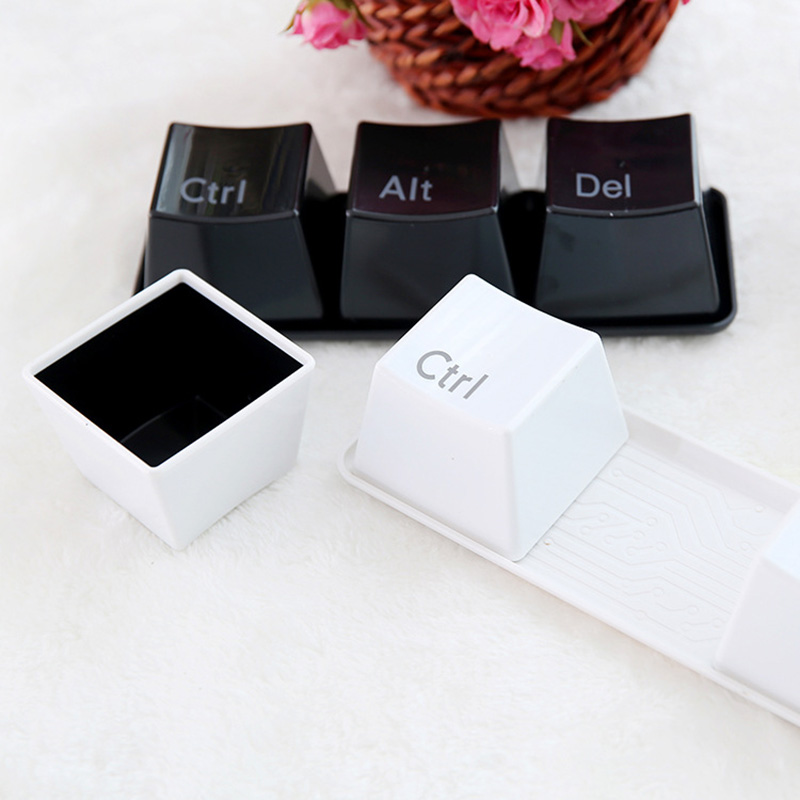 One package includes three keyboard cups and one tray, which can provide you with large capacity service. Three independent keyboard cups are convenient to hold the drink for up to three people and store the nut or the candy in the category.