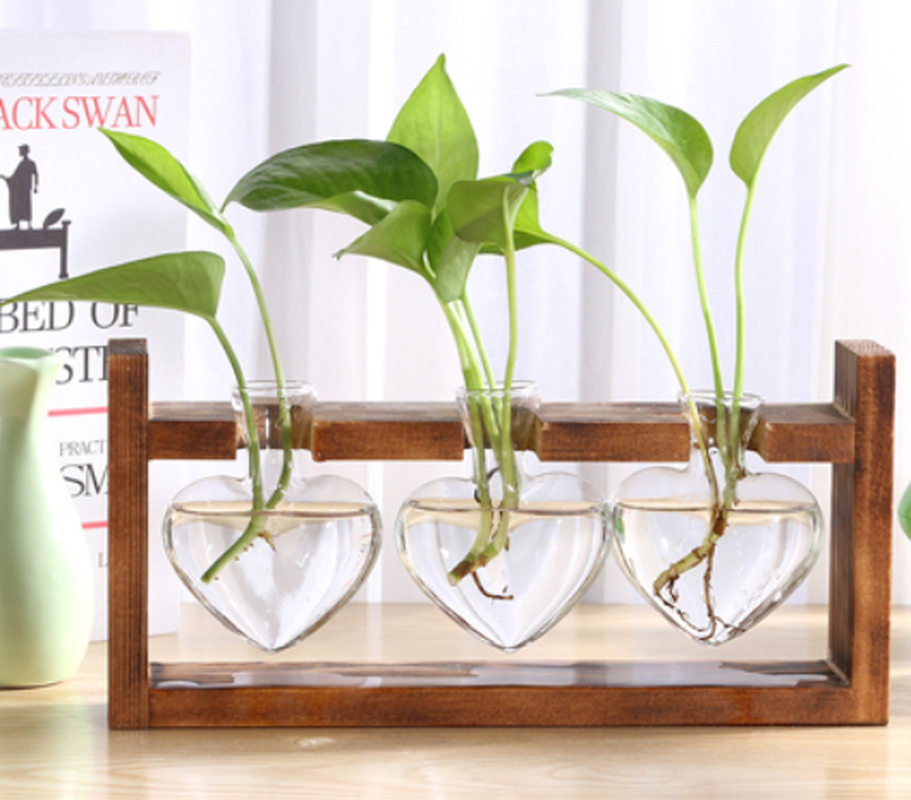 Glass Wood Vase Table Desktop Hydroponics Plant Stationery Bonsai Flower Pot Decoration Hanging Pots with Wooden Tray Pen Holder