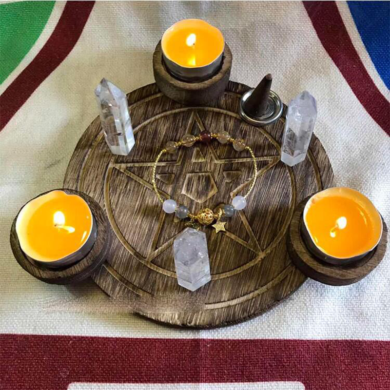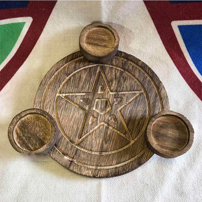 Pentagram wooden candle holder